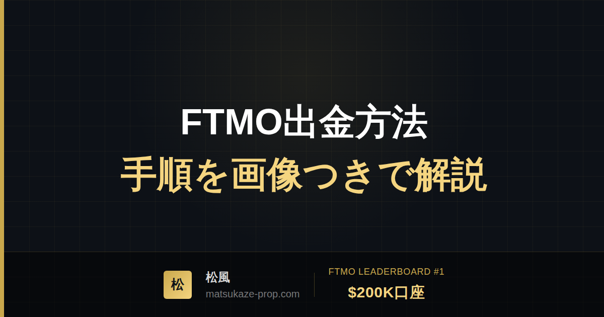 「合格したけど出金はどうやるの?」「着金まで何日かかる?」FTMOトレーダーになった直後に最も気になるのが出金です。この記事では、筆者・松風(FTMO $200,000口座保有)の実体験をもとに、出金方法の選び方・手順・手数料・着金日数まで完全に解説します。