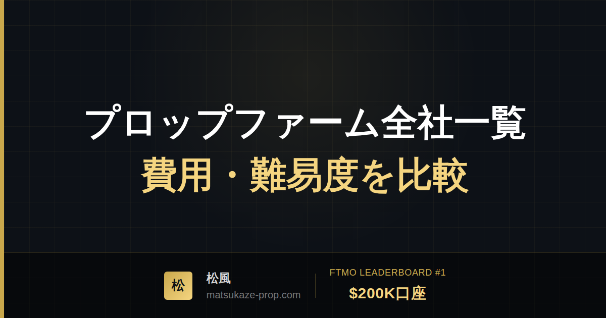 各社の詳細な費用比較・難易度比較・合格率は「プロップファーム比較」にまとめている。おすすめ順位と選び方のロジックは「プロップファームおすすめ比較」で解説している。
