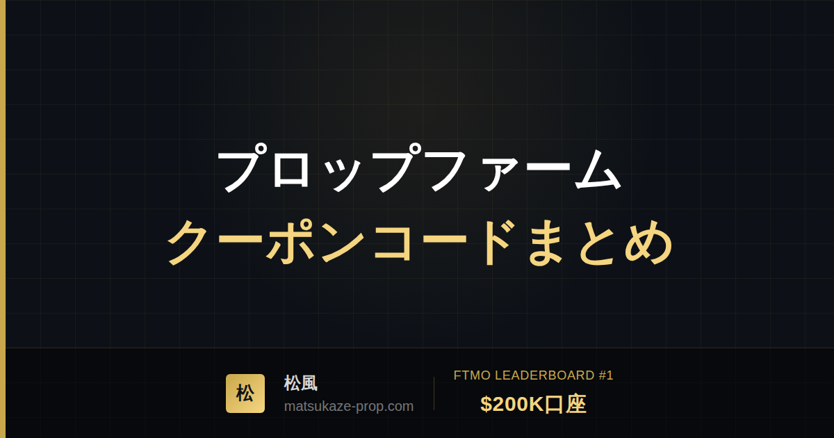 「チャレンジを申し込む前にクーポンを探している」という方向けに、主要プロップファームのクーポンコード・割引情報を一か所にまとめた。登録前に必ず確認してほしい。